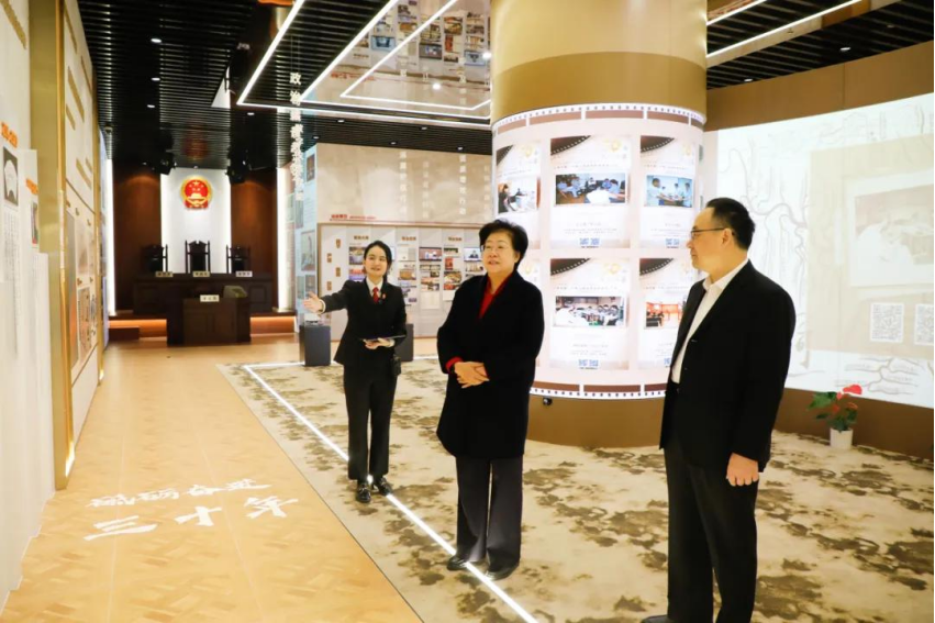11月28日上午,最高人民法院审判委员会副部级专职委员王淑梅同志一行到上海国际商事法庭调研考察。上海市高级人民法院党组成员、副院长曹洁,上海市第一中级人民法院党组书记、院长吴金水等陪同调研。