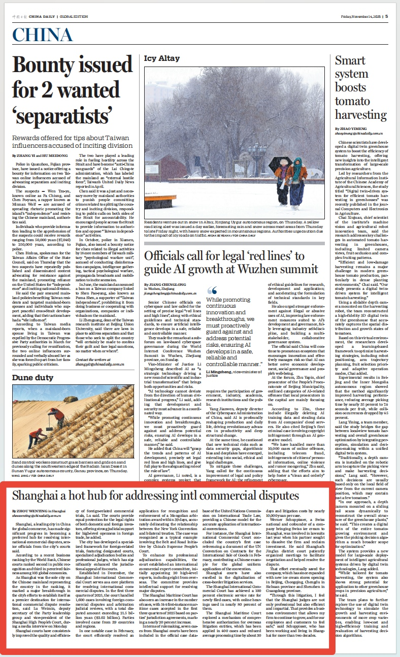 最高人民法院新闻局、中国日报、澎湃新闻等媒体深度报道上海国际商事法庭创新实践